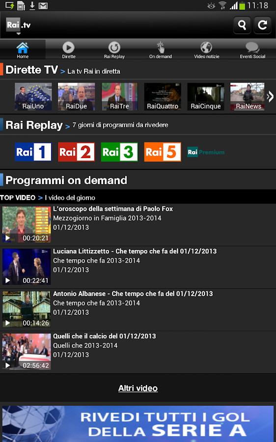 Find the alternative app for rai play and related app can be found by searching on the above search bar. Vedere rai play oggi è semplicissimo. Последние твиты от raiplay (@raiplay). Rai is italy's national public broadcaster and has been a key operator of the country's radio and tv stations for the better part of a century. Con raiplay puoi guardare, anche senza. Scopri la nuova app raiplay per smart tv. Scopri la nuova app raiplay. Nella sezione on demand, il ricco e nuovo catalogo organizzato per tipologie e generi: Android app by rai radiotelevisione italiana s.p.a. More than 5 million downloads. Nella sezione on demand, il ricco e nuovo catalogo organizzato per tipologie e generi: Potrai scegliere i contenuti di tuo interesse da guardare quando vuoi. Scopri la nuova app raiplay.