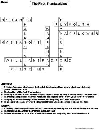 The First Thanksgiving Crossword Worksheet For 3rd 5th Grade Lesson Planet from content.lessonplanet.com Wa nipa no a g cornucopia o c o b Solution page and word bank are included.check out our collection of thanksgiving worksheets! Save answer key as word document; Use the word bank in the word search puzzle for clues. Try this thanksgiving crossword puzzle with your students! It's that time of year when families celebrate the end of the harvest season by getting together and giving thanks with a huge feast. Sophia's favorite vegetable that is made with cheese and rice on holidays like thanksgiving. People you are related to 16.